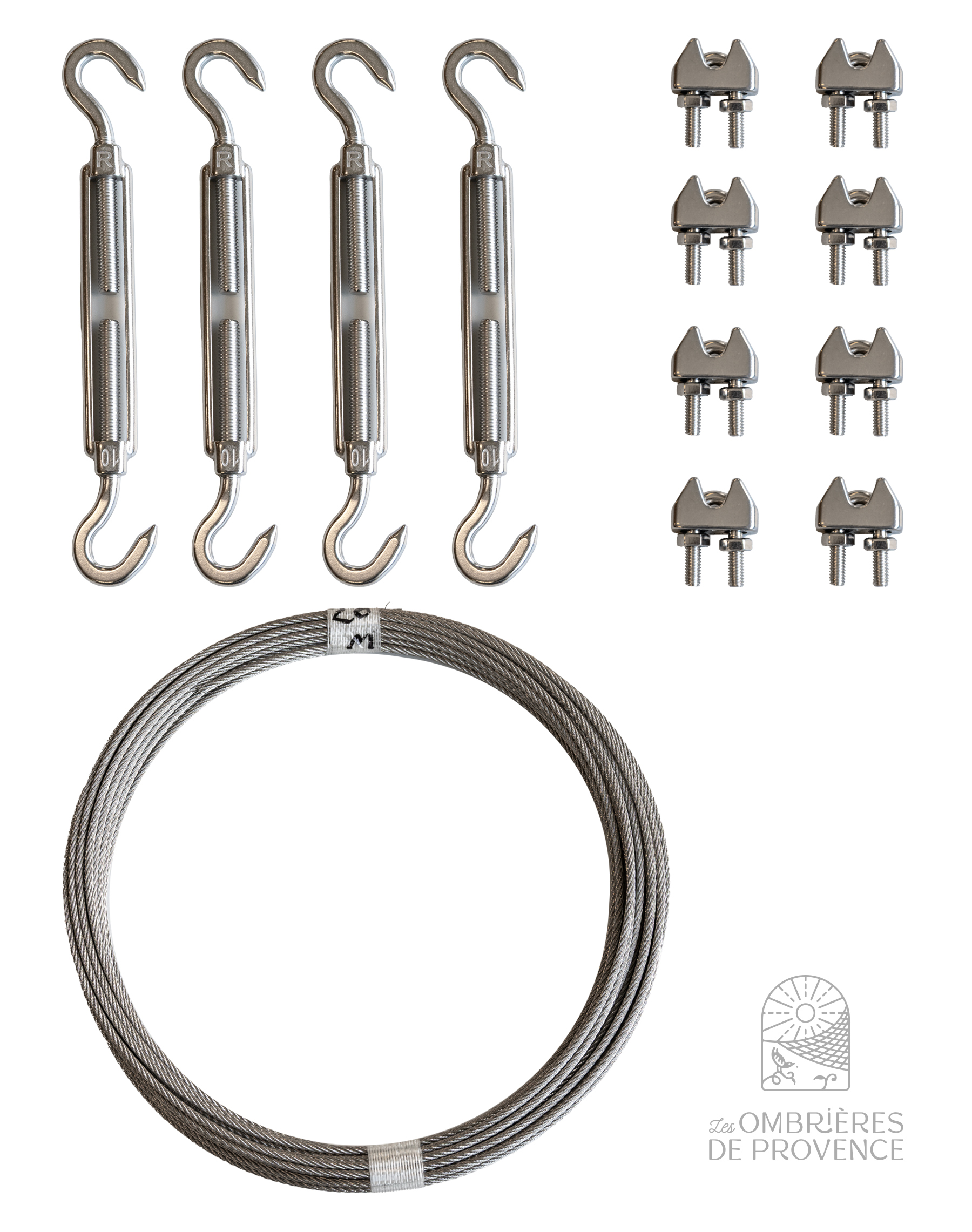 This kit includes the installation of two diagonal cables, each tensioned using a tensioner and two cable clamps at each end.