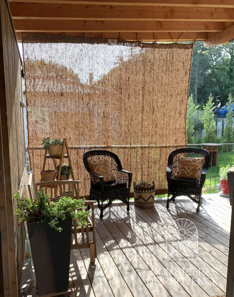 Unlike classic shade cloths, this product is perfectly suited to pergolas with widely spaced roof bars. Its ingenious fixing system allows for simple installation, even on supports without closely spaced crossbars. Coconut fiber, naturally durable, guarantees a filtering and refreshing effect under your pergola, without compromising on strength or elegance.