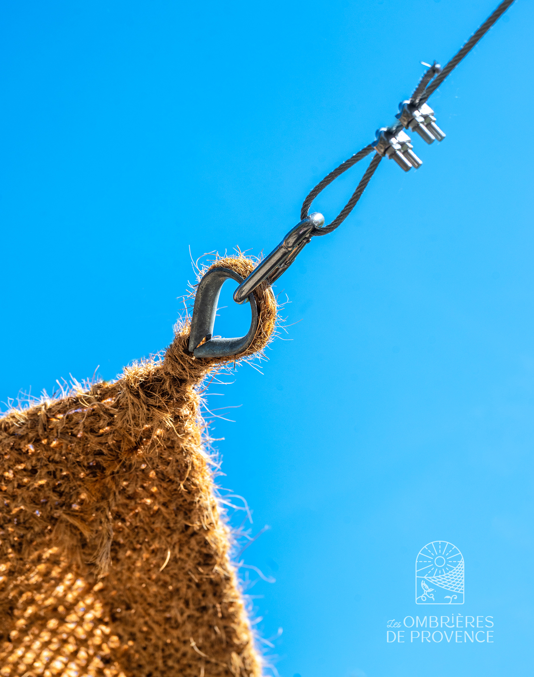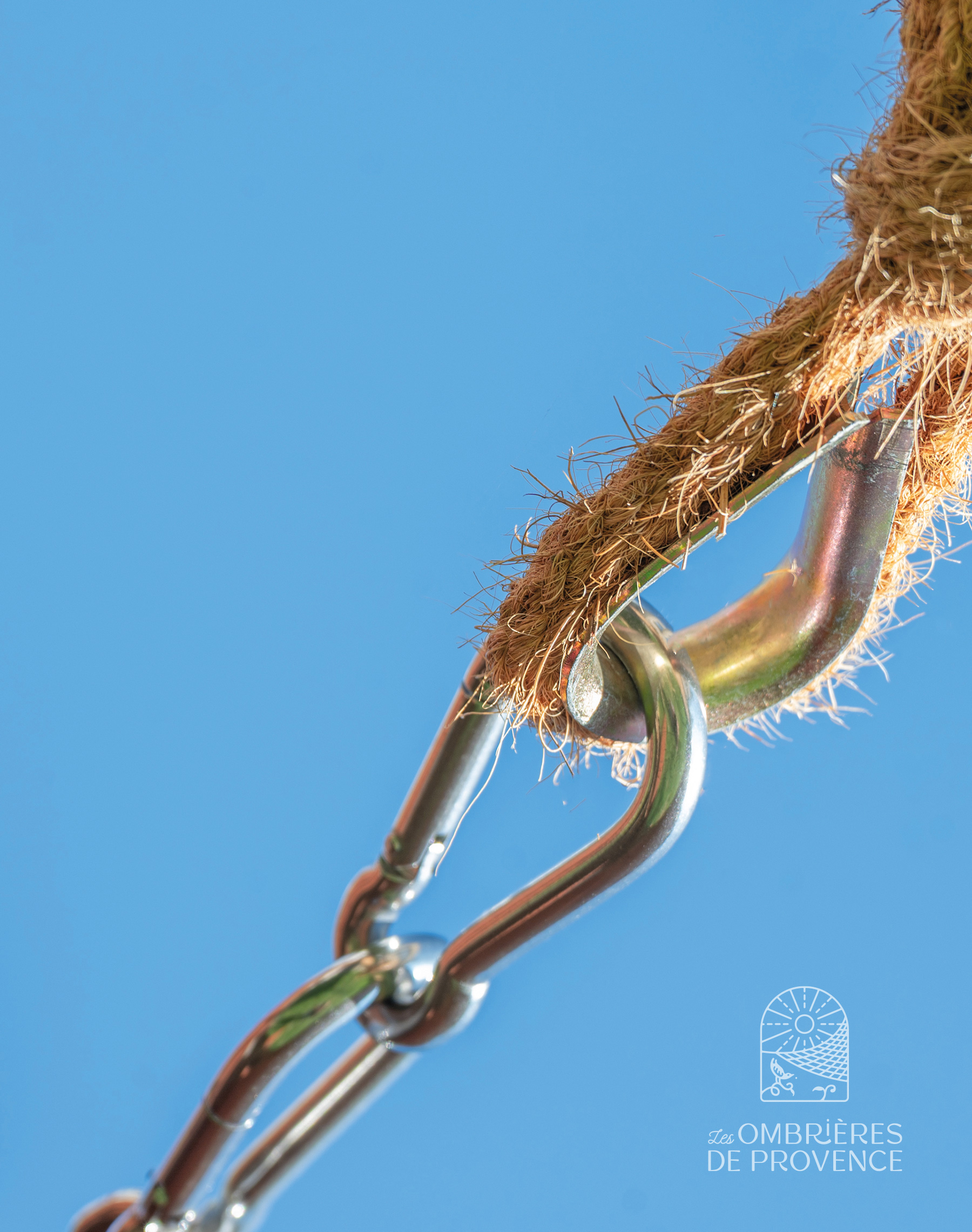 Los mosquetones facilitan el montaje de la vela de sombra. También permiten desmontarla más rápidamente para guardarla a cubierto durante el invierno.