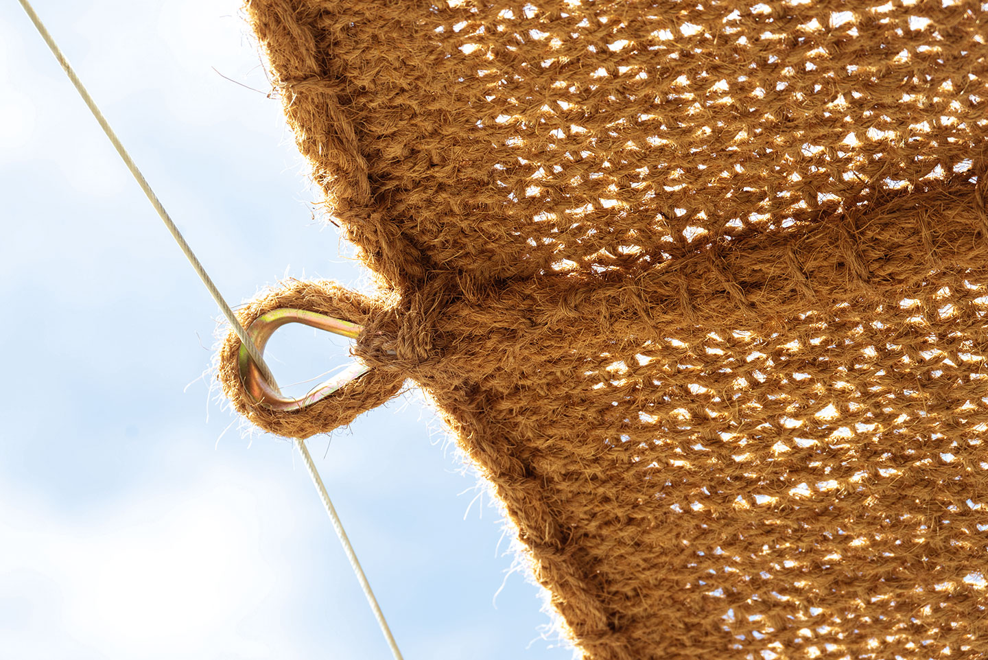 Nous avons amélioré la qualité du fil de tissage et multiplié le nombre de fils de coco sur l’ombrière afin d’en prolonger la durée de vie. Les impacts sur le tissage sont les suivants :