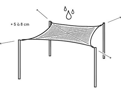 Choisissez le modèle de voile d’ombrage à 4 points d’attache, avec des cordes de soutien disposées en diagonale ou le modèle de toile d’ombrage pour pergola à traverses espacées, avec des cordes de soutien en quadrillage.