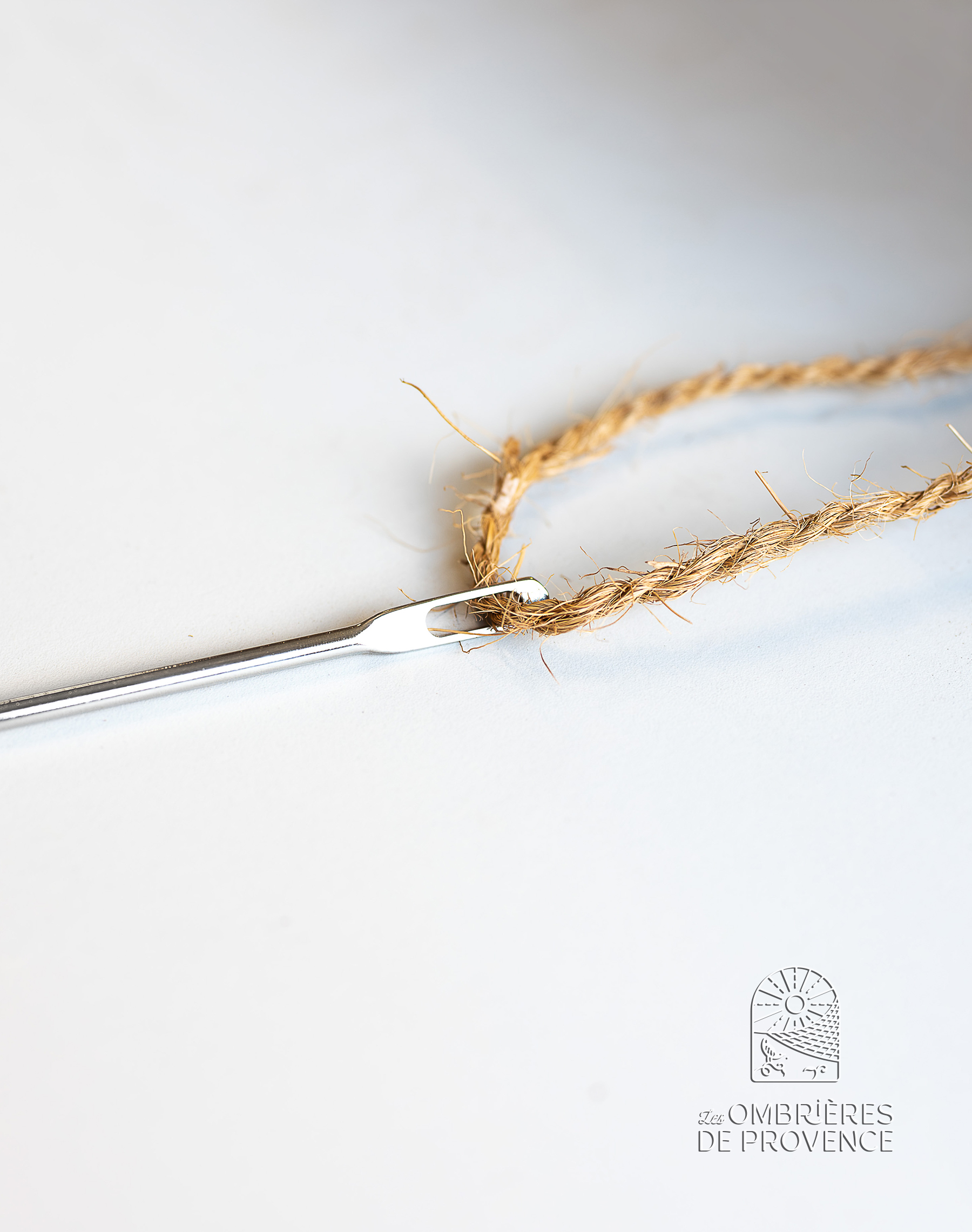 L’aiguille simplifie l’insertion de la corde dans le tissage pour attacher la toile à la structure.